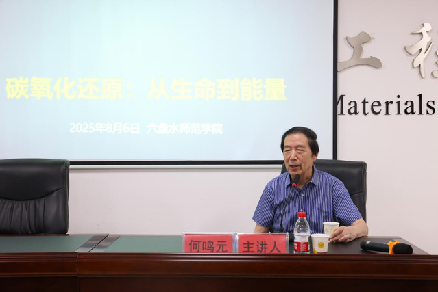 8月6日,中国科学院院士、华东师范大学化学与分子工程学院何鸣元教授应邀莅临我校指导工作,并为师生作了题为《碳氧化还原:从生命到能量》的学术报告。报告会由化学与材料工程学院院长雷以柱教授主持,化学与材料工程学院领导班子成员、全体教师及在校研究生、本科生共同聆听了报告。
