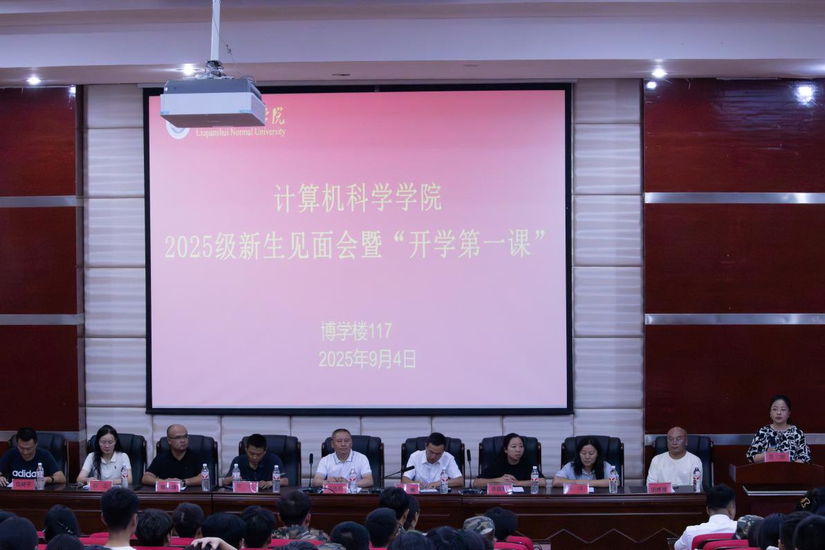 9月4日晚,计算机科学学院党委书记吕选周、院长秦鹏为2025级新生讲授“开学第一课”,209名新生在博学楼知行讲堂聆听。学院党政班子成员、各科室负责人、各系主任出席,院党委副书记葛文卿主持。