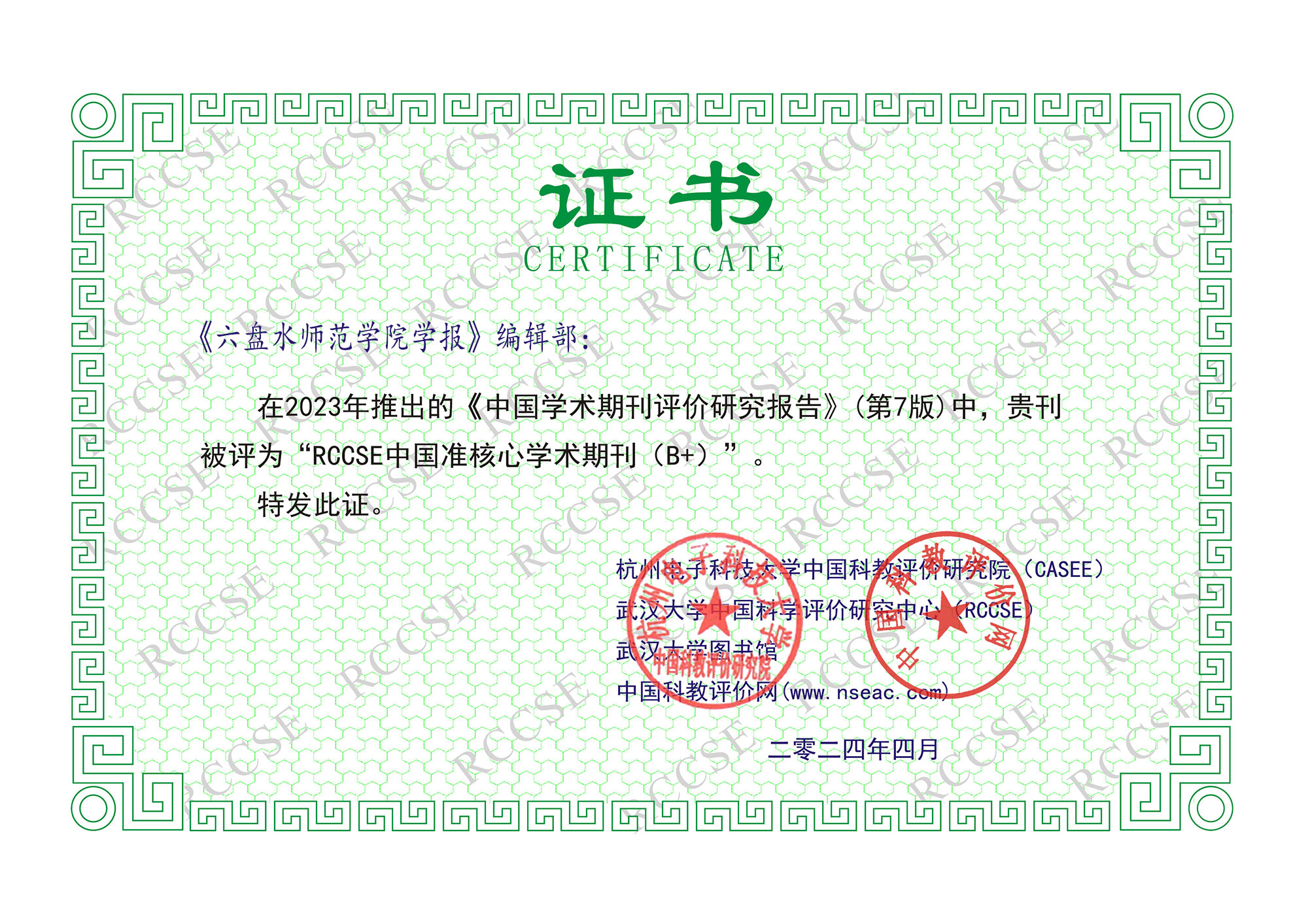 中国科学评价研究中心(RCCSE)作为中国学术期刊评价体系是目前国内公认的主流学术期刊评价体系之一,由中国科教评价研究院、武汉大学中国科学评价研究中心、武汉大学图书馆、中国科教评价网等联合研制。现已有2000余家出版机构和800多个科研管理部门将该报告的评价结果作为办刊质量评估和科研成果统计的重要参考工具。《中国学术期刊评价研究报告(第7版)》显示,本次共认定及收录中文学术期刊6622种,按学科分类,根据期刊的综合评价得分排名并划分等级,其中,B+等为准核心期刊,占期刊总数的30%,即排在30%—60%的期刊;该评价报告于2009年推出第一版,随后每隔两年推出新的一版,是国内公认的七大学术期刊评价体系之一。此次入选是对《六盘水天辰娱乐学报》办刊质量和学术质量的肯定,表明了学术影响力的进一步提升,也为今后的发展指明了方向。