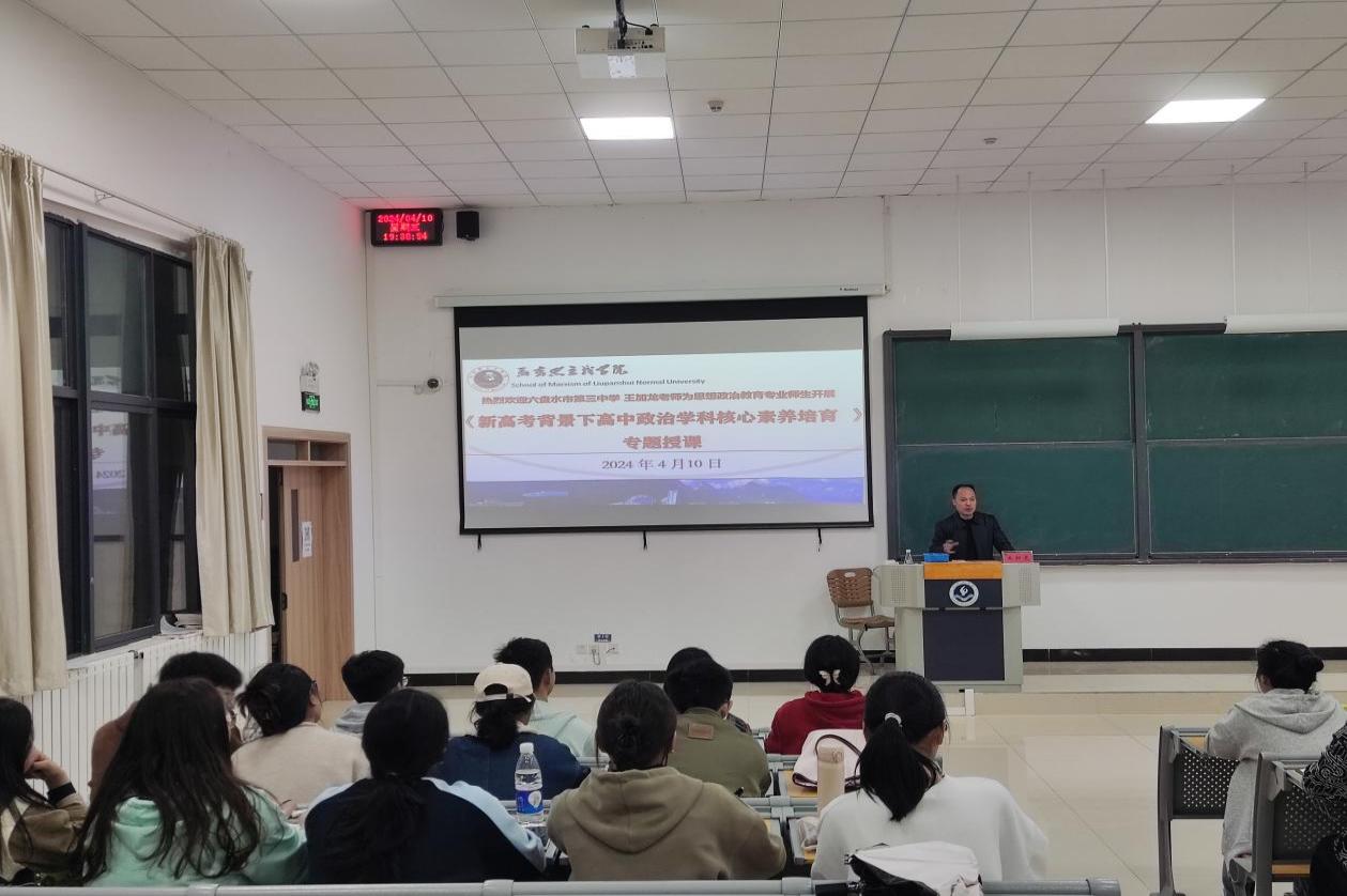 为适应高考综合改革,4月10日晚上,思想政治教育系在勤学楼311教室组织开展了思想政治教育专业学科教学活动,六盘水市第三中学王加龙老师受邀参加活动。