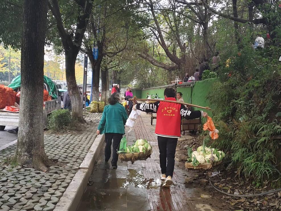 11月10日,马克思主义学院2022级、2023级思想政治教育团支部和2024级思想政治教育(专升本)团支部共同前往曹家湾农副批发市场,协助社区工作人员维护市场秩序,开展社区志愿服务活动。本次社区服务主要围绕劝阻占用公共资源的摊贩并清理违规设立的摊位,维护批发市场秩序开展工作。