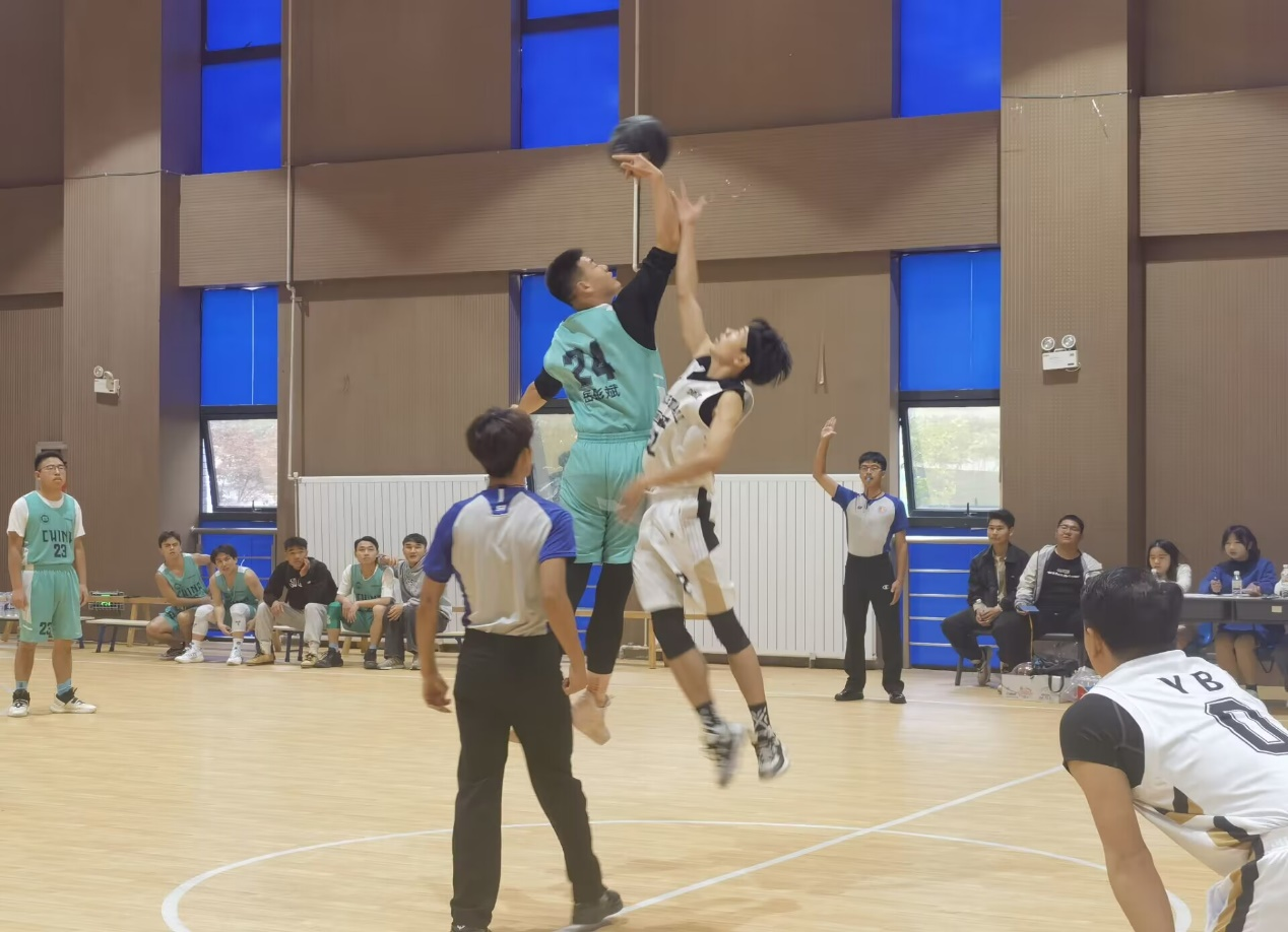 随着裁判员开赛哨声的吹响,激烈而精彩的决赛正式开始了。球员们灵活的带球过人、空接、盖帽、花式运球等高超的技巧在场上不断展现,让观众应接不暇,观众看得激动万分,欢呼声时不时地在整个室内篮球场响起。最终数学与应用数学2020级取得比赛的胜利。