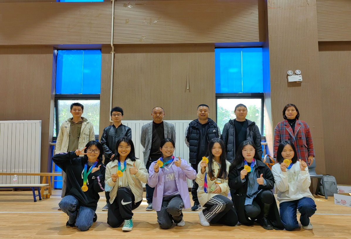 图七:学院领导、教师代表与女子组冠军合影
