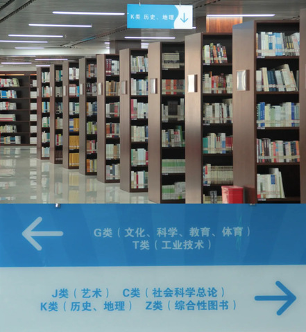 图书馆所有图书排架均按索书号的大小,按A→Z,0→9的顺序从左到右、从上到下呈“S”型排列。