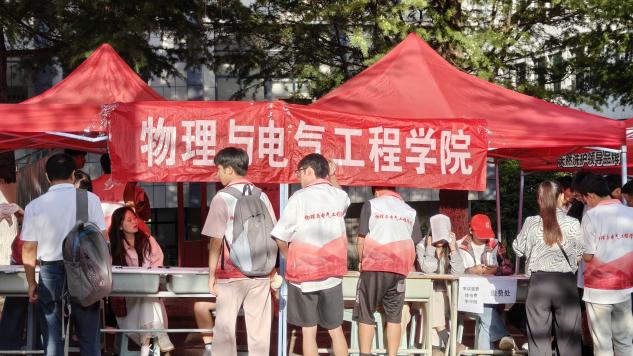 金秋送爽丹桂飘香。827日,物理与电气工程学院迎来了2025级新同学。校园内彩旗飘扬、人流如织,洋溢着热烈而温馨的迎新氛围。一批身着物电学院马甲的志愿者忙碌穿梭,用热情的笑容和贴心的服务迎接来自五湖四海的新同学。